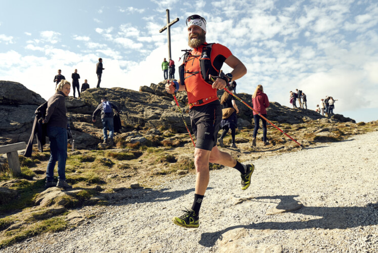 Bei nur vier Grad Celsius wagten sie sich auf die 60 Kilometer lange Strecke, bei der es insgesamt 2500 Höhenmeter und 7 Gipfel zu bewältigen gilt. Mit Silberberg, Kronberg, Harlachberg, Sternknöckl, kleiner Arber, großer Arber und Mittagsplatzl waren damit alle Highlights rund um Bodenmais vertreten. Um zehn Uhr, bei mittlerweile strahlenden Sonnenschein erfolgte der Start über die 35 Kilometer-Distanz: der Auerhahntrail ist nur gut halb so lang, aber mit 1500 Höhenmeter auch nicht zu unterschätzen. Schließlich stand gleich zu Beginn der Anstieg auf den kleinen Arber über den Hochfall an, bevor es dann auf den großen Arber ging.