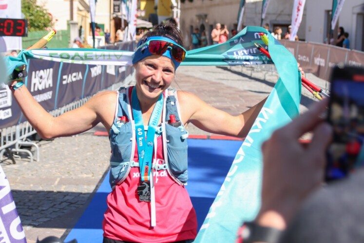 Eine sehr deprimierende ‘Ausbeute’ für mich, vor allem wenn ich bedenke, dass ich in den letzten 5 Jahren bei fast allen meinen Läufen auf dem Trepperl stehen durfte. Da aber in den letzten Wochen eine deutliche Verbesserung meiner Verletzung zu erkennen war, entschied ich, nach Absprache mit meinem Physio, bei diesem letzten Rennen an den Start zu gehen. Ganz ohne Druck, ohne Erwartungen, einfach nur mit dem Ziel, das Ziel zu erreichen. Und genau mit dieser Einstellung ging ich ins Rennen. So stand ich zusammen mit meinem Freund Martin am Samstagmorgen an der Startlinie in Zirovnica, ca. 30 km von Kranjska Gora entfernt. Das Wetter an diesem Tag war wie aus dem Bilderbuch. Am Morgen noch sehr frisch, wurde es ein sonniger, fast schon zu heißer Tag, ohne eine Wolke am Himmel. 7 Uhr, der Startschuss fiel. Von Anfang an fühlte ich mich richtig gut und konnte mich zu meiner Überraschung im vorderen Feld, als 1. Frau, einreihen. Schon der erste Anstieg hatte es in sich. Auf 11km mussten wir knapp 1.800 Hm bewältigen. Vorteil für mich, da ich ja bekanntlich im Uphill stärker bin als im Downhill. So konnte ich hier meinen Vorsprung schon gut ausbauen. Es dauerte nicht lange, bis ich auf die ersten Läufer der 170 km-Strecke traf, die schon seit dem Vortag unterwegs waren. Vorbei an der 1. VP am höchsten Punkt, dem “Stol” auf 2.236m folgte nun ein steiler Downhill auf losem Schotter. Die Strecke führte uns über wunderschöne schmale Wege, durch Geröllfelder, über mehrere Wiesenwege mit Pferden und Kühen. Ich liebe es, Kühe auf einer grünen Wiese in den Bergen zu sehen. An diesem Anblick kann ich mich jedes Mal aufs Neue erfreuen, so auch an diesem Tag. Immer noch fühlte ich mich richtig gut und konnte die wunderschöne Landschaft total genießen. An diesem Tag fühlte sich für mich einfach alles richtig und gut an, ich hatte Freude am Laufen und war einfach nur happy, dass es mir zum ersten Mal seit langer Zeit wieder gut ging. Meine Verletzung war zwar zu spüren, aber es war OK, sodass ich sie teilweise sogar vergaß. Ich lief meinen eigenen Rhythmus und war total in meinem Element. Die Zeit verging wie im Flug. Später traf ich auf immer mehr Läufer der 100km-Strecke. Wir feuerten uns gegenseitig an und viele von ihnen riefen mir zu “Super, Du bist die 1. Frau, weiter so, diesen Sieg holst Du Dir”. Das freute mich wirklich sehr. Diese Läufer waren seit dem Vorabend unterwegs, liefen die ganze Nacht durch und freuten sich trotzdem für mich und riefen mir diese lieben Worte zu. So etwas nenne ich richtige Sportlichkeit! Kilometer um Kilometer spulte ich runter, ich hatte keine Ahnung, wie weit die 2. Frau hinter mir war. Ich konzentrierte mich einfach nur auf mich selbst. Auf den letzten 10 km wurde es aber dann doch noch extrem zaach. Viele Kilometer mussten wir davon auf Asphalt laufen. Auch die letzten 300 HM ging es auf der Teerstraße hinauf. Die Nachmittagssonne knallte nun mit aller Wucht auf uns herab. Kurzzeitig dachte ich mir “Warum zum Teufel machst du das?”. Schnell schob ich den Gedanken beiseite, freute mich wieder, dass ich schon so weit gekommen und das Ziel bereits in greifbarer Nähe war. Von weitem konnte ich schon den Moderator hören. Irgendwann rief mir eine Frau zu “only 1,5km left” und ich dachte nur YESSS! Dann war es soweit, noch ein paar Stufen durchs Dorf hinauf und ich war auf der Zielgeraden. Überglücklich, mit Tränen in den Augen lief ich als 1. Frau über die Ziellinie. Martin, seine Eltern, die extra angereist waren und einige Freunde und Bekannte warteten hier auf mich und freuten sich mit mir über meinen Sieg. DANKE FÜR DIESEN SCHÖNEN MOMENT!