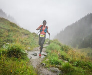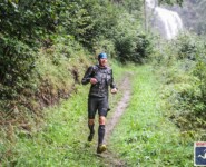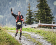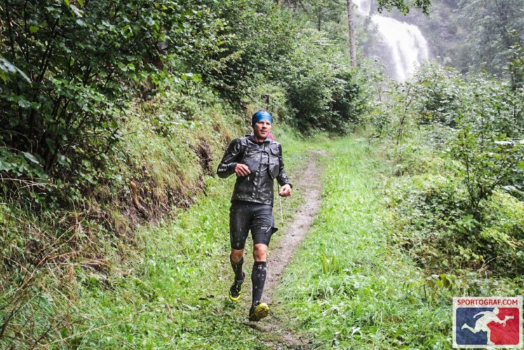Endlich erreiche ich VP2 und wie es der Zufall will steigt „just-in-time“ Michael Förster aus der Gondel um Basilia zu supporten. Er hilft mir aus den tropfnassen, am Körper klebenden Klamotten (sonst hätte man sie mir wohl vom Leib schneiden müssen) und mit klammen Fingern suche ich Wechselkleidung aus dem Rucksack. Das Ganze kostet mich höchstens ein paar Minuten, trotzdem verliere ich den Anschluss und werde auf Platz sechs durchgereicht. Was dann mit mir passiert kann ich schwer beschreiben: Mit den wohlig warmen Kleidungsstücken und der schützenden Shakedry Regenjacke am Körper wechsle ich vom Wettkampf- in den Wohlfühlmodus. Die Kilometer plätschern sprichwörtlich dahin, ich genieße Lauf und Landschaft aber auf „Schinden“ habe ich keine Lust mehr. Mit dieser Einstellung ist im starken Starterfeld kein Blumentopf zu gewinnen und nach 4:56h lande ich auf dem sechsten Platz.