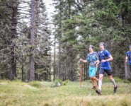 Das dies jedoch trotzdem kein Kindergeburtstag werden würde, sollte vor allem mir bewusst werden. Bereits beim Ersten Anstieg lagen wir den 7-Tages-Etappen-Läufern, um Moritz auf der Heide und seinem Partner im Nacken. Bis hin zur V1 am Parkplatz Sinnesbrunn nahmen wir diese Position ein. Jedoch spielte von da an mein Kopf nicht mehr ganz so mit, wie ich es gerne gehabt hätte. Aus unerklärlichen Gründen konnte ich die PS nicht mehr auf die Strecke bringen. Der Fokus lag nicht mehr am eigentlichen Vorhaben. Entschied sich mein Kopf für den bequemen Weg die letzten Kilometer runter zu spulen? Konnte ich mit dem Vorsprung nicht umgehen? Auch nach einigen aufputschenden Worten von Daniel bis zur V2 ging nicht viel mehr vorwärts als normal. Ich bemerkte das dies dem ehrgeizigen Daniel gar nicht so passte. Als ich dann noch einen Anruf seiner Frau entgegennahm wurde die Stimmung kurzerhand etwas rauer. Angepasst an mein Tempo liefen wir im letzten Teil der Stecke über die Forststraße und dem anschließenden Downhill der Ziellinie in Imst entgegen.