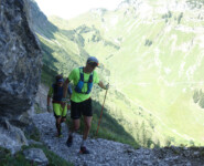 Das es oft anders kommt als man denkt merkten wir bereits nach 30 Minuten der 1. Etappe über 39,40 Kilometer und 2.343 Höhenmeter von Oberstdorf im Allgäu (Deutschland) nach Lech am Arlberg (Österreich). Lukas kämpfte von Beginn an mit starken Magenproblemen und quälte sich – nach flottem Start – ab Kilometer acht regelrecht über die Strecke. Nordic Walking war angesagt, verbunden mit leichtem Trab bergab – unterbrochen durch heftige Schmerattacken bei Lukas. Er litt und das gewaltig. Dabei waren die Trails über die Roßgundscharte bis zur Mindelheimer Hütte und weiter zum Schrofenpass ein einziges landschaftliches und läuferisches Highlight. Genießen wie geplant konnten wir es leider nicht. Nach fast vier Stunden Qual waren die Schmerzen zu groß. Lukas entschied sich auszusteigen („Das erste Mal seit der B-Jugend, dass ich ein Rennen nicht beende“) und wir kämpften uns zusammen bis zu VP2 bei Kilometer 29 – wo er ärztlich versorgt und von seinen Eltern abgeholt wurde. Zum ersten Mal bei fünf TAR-Starts lief ich also alleine, als sogenannter Individual-Finisher außerhalb der Wertung weiter und kam nach 5:10 ins Ziel nach Lech. Das ermöglichte mir einen etwas anderen Blick auf den TAR, den ich so noch nicht kannte: Ich holte das Feld von hinten auf, plauderte, sah mir die unterschiedlichen Teams an und bekam nochmal einen guten Gesamteindruck von der Atmosphäre dieses einzigartigen Events.