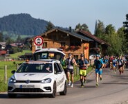 Nun stehen Lukas und ich gemeinsam als Team an der Startlinie in Oberstdorf. Der RUN2 ermöglicht es zum zweiten Mal Athletinnen und Athleten, statt der gesamten acht Tage nur Etappe 1 und 2 des originalen TAR zu laufen und in einer „Lightversion“ am Abenteuer Alpenüberquerung teilzunehmen. Wir hielten das für eine gute Idee: Wir wollten Freunde und Bekannte treffen, zwei Tage Spaß auf den Trails haben, dabei aber zeigen, was wir läuferisch so draufhatten. Immerhin gab es beim RUN2 eine separate Wertung.