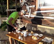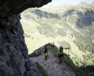 Auch am nächsten Morgen musste ich alleine starten. Hier ist es beim TAR Pflicht, sich aus Sicherheitsgründen einem 2er-Team anzuschließen. Meine Wahl fiel auf die beiden starken Schweizer Adrian Zurbrügg und Mike Baumgartner. Adi hatte ich beim Monte Rosa Skymarathon kennen und sehr zu schätzen gelernt und so freute ich mich auf die 2. Etappe von Lech nach St. Anton am Arlberg über 28 Kilometer und 1800 Höhenmeter. Klar, Quäl- und Risikobereitschaft waren nicht bei 100 % – lief ich doch nur noch um die „goldene Ananas“. Trotzdem, oder genau darum tat mir die Etappe mental sehr gut und ich konnte wahrlich jeden Kilometer Trail genießen. Ich bewegte mich zwischen den drei Schweizer Führungsteams und lief nach 3:15h, nach einem atemberaubend schönen Downhill glücklich und zufrieden im traumhaft gelegenen St. Anton ein.