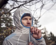 Die Jacke besteht aus dem neu entwickelten Pertex Shield – ein ultraleichter, wasserdichter Stoff für schnelle Aktivitäten im Freien. Die hydrophile PU-Membran bietet dynamische Atmungsaktivität auf höchstem Niveau: Je mehr man schwitzt, desto atmungsaktiver wird der Stoff. Beim Laufen ist die Jacke angenehm. Der Schnitt ist athletisch und sie macht – ohne großen Schnickschnack – genau das, was man von einer guten, wasserdichten Laufjacke erwartet: Sie hält trocken, ohne dabei zu behindern. Der durchgehende Reißverschluss ist leichtgängig und die enganliegende Kapuze sitzt gut.