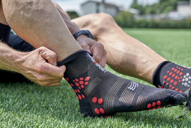 Die Wahl eines guten Sockenpaares ist entscheidend für den Komfort während des Laufens, besonders wenn die Bedingungen sehr heiß und feucht sind. PRS V3 Ultra Light Run High von Compressport wurden für eine maximale Unterstützung Ihrer Füße konzipiert und bieten ein perfektes Feuchtigkeitsmanagement, außerordentlich leichtes Gewicht und hervorragenden Komfort. Ein leichtes Kompressionsband, das rund um die Senkfußeinlage führt, verhindert, dass sich die Socken in Ihren Laufschuhen verdrehen oder nach unten rutschen. Wichtiger jedoch regen die Socken den venösen Rückfluss an, wodurch Ihr Schritt mehr Muskelspannung erhält. Das Design der Socken wurde überarbeitet und große Bereiche aus atmungsaktivem Netzgewebe um die Füße herum integriert, die die Transpiration ableiten. Dank ihres schnell trocknenden Gewebes bieten diese Socken schnelle Trockeneigenschaften gegen nasse Füße. Jedes Detail und jede Technologie wurde so konzipiert, dass Überhitzung vermieden wird. Ein zusätzlicher Großzehenschutz bewahrt Läufer vor den Einflüssen durch den Laufuntergrund. Da sie über keinerlei Nähte oder Gummis verfügen, entstehen keine Reizungen oder Druckstellen. Die ergonomische Zehentasche nimmt den Vorderfuß bequem auf.