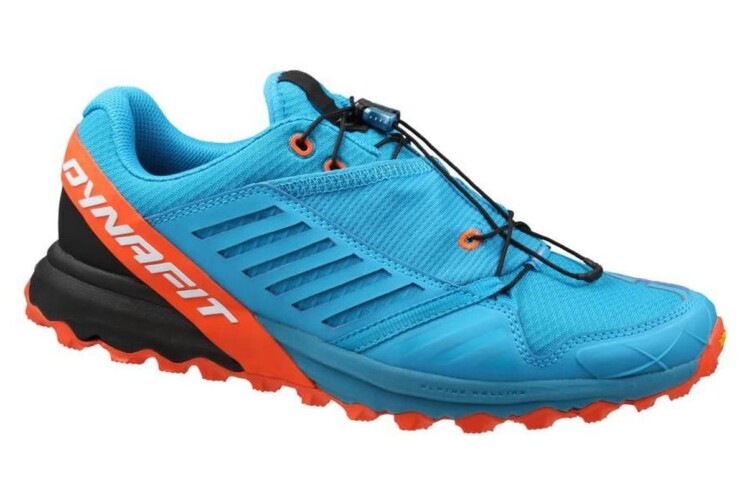 Der Dynafit Alpine Pro wirkt auf den ersten Eindruck sehr solide und ist sehr gut verarbeitet. Beim ersten Anziehen merkt man sofort die Ortholite-Einlagesohle, die sich an die Form des Fußes anpasst. Mit den knalligen Farben ist er auf alle Fälle ein Hingucker und wirkt sehr sportlich. Die Vibram-Megagrip-Sohle überzeugt sofort auf den ersten Laufmetern. Die Passform ist eher für schmalere Füße geeignet. Das Schnürsystem verteilt den Druck gut, doch sollte man beim schnüren acht geben, da es leicht zum Überschnüren verführt. Die elastische Tasche an der Schuhzunge außen ist praktisch zum verstauen des Schnürbandes.