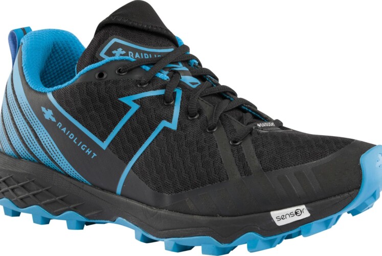 Der Response Dynamic von Raidlight sieht auf den ersten Blick etwas bieder aus, klassische Schnürung, dezente schwarz/blaue Farbmischung und ein etwas klobiges Aussehen. Beim weiteren betrachten jedoch versetzt mich dieser Schuh ins Staunen. Dies beginnt bereits beim Gewicht, das mit angegebenen und nachgemessenen 290 g. unter der magischen 300 g. Grenze liegt und somit eher zu den Leichtgewichten gehört. Die Schuhzunge ist anatomisch geformt und reicht an der Fußinnenseite weiter hinauf. An diesem Teil versteckt sich auch eine kleine Tasche, die die abstehenden Schnürsenkel verschwinden lässt. Bei der Sohle geht Raidlight keine Kompromisse ein und verwendet die gleiche wie beim Modell Revolutiv. Aber im Gegensatz zu diesen verfügt der Response Dynamic über wesentlich mehr Polsterung für den Fußbereich.