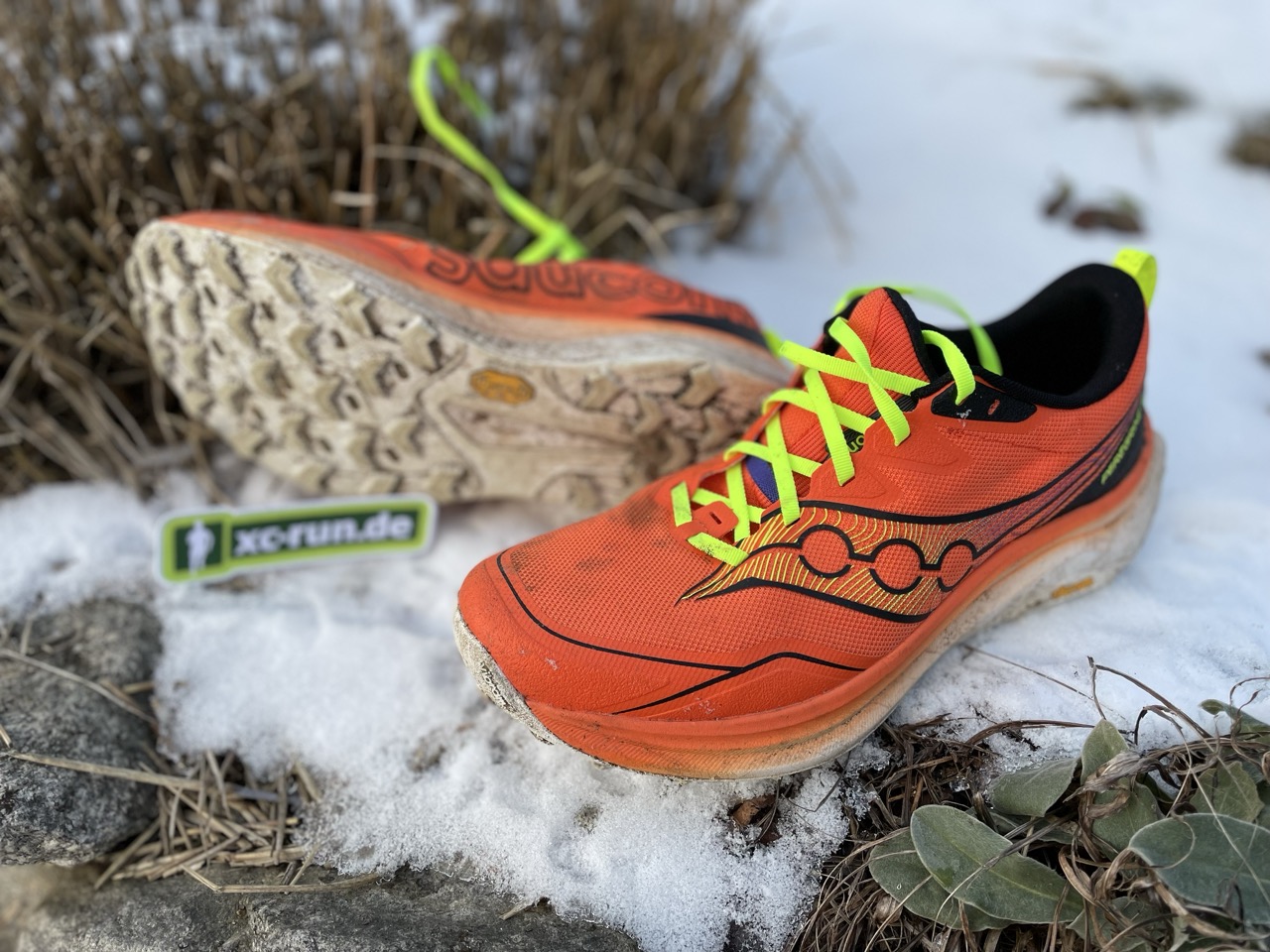 Optisch bleibt Saucony seiner Linie treu – sportlich, funktional und klar als Trailrunning-Schuh erkennbar.