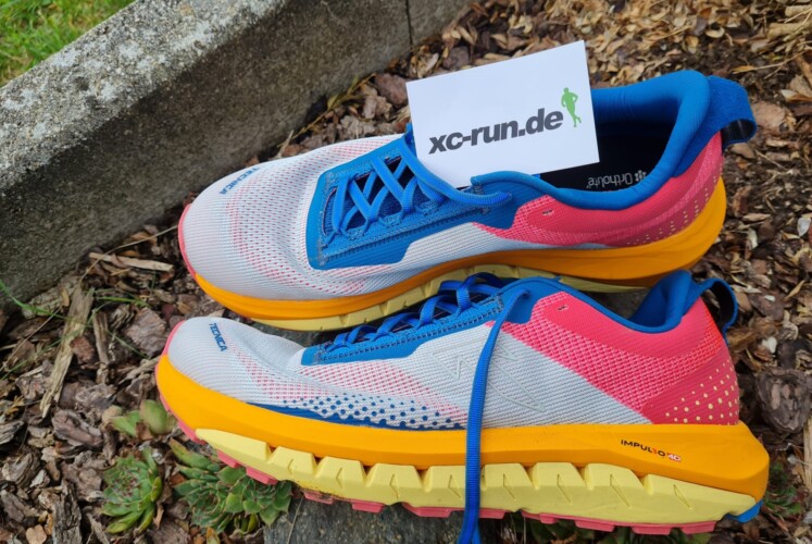 Mit einer Sprengung von nur 4 mm verspricht der Schuh ein besonders direktes Laufgefühl. Das Obermaterial besteht aus großflächigem Mesh mit schmalen Stabilisierungszonen, wodurch vor allem die Straßenlauf-Komponente betont wird. Mit 351 g (EU-Größe 44) gehört der Schuh nicht zu den leichtesten Modellen. Die klassische Schnürung bietet keine Möglichkeit, überschüssige Senkelenden sicher zu verstauen.