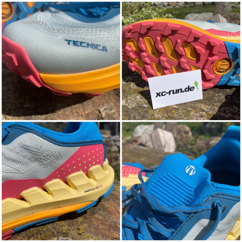 Der Pyrox Xplore MS fällt sofort durch sein modernes Design auf. Die Konstruktion der Mittelsohle basiert auf der innovativen, patentierten Impulso4D-Technologie, die vertikale Kräfte absorbieren und gleichzeitig für eine natürliche Abrollbewegung sorgen soll. Die Kombination aus superkritischem EVA- und TPEE-Schaum in der Zwischensohle bietet eine ausgewogene Dämpfung und Reaktionsfreudigkeit. Die Sprengung beträgt 6 mm, was ein direktes Laufgefühl verspricht. Die Außensohle mit 4,5 mm tiefem Stollenprofil und Tecnigrip-Mischung soll optimalen Grip bieten.