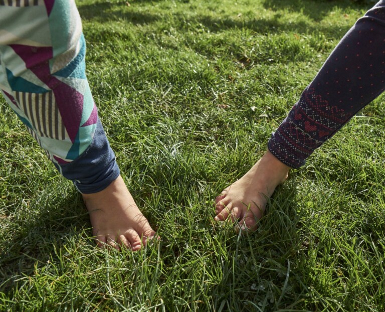 "Blindekuh" mit den Füßen. Dafür benötigt man verschiedene Untergründe wie Moos, Gras, Heu, Sand, glatte Steine - die Kinder versuchen mit verbundenen Augen zu erraten um welchen Untergrund es sich handelt. © Stefanie Felgenhauer / woidlife photography