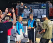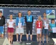 Siegerehrung Deutsche Meisterschaft beim Zugspitz Ultratrail 2022 mit den Deutschen Meistern Anna Hahner und Markus Mingo © xc-run.de