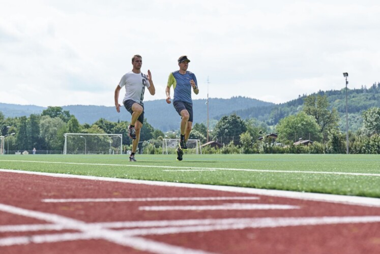 Die befestigten Wege kannst du nun auch guten Gewissens verlassen und dir schöne Strecken in der Natur suchen. Das ist nicht nur für die Schrittkoordination eine Herausforderung, sondern bringt auch enorme Trainingsreize. Durch den unregelmäßigen Wechsel von leichten Steigungen und Gefällen und die unterschiedlichen Laufgeschwindigkeiten ist das Laufen auf Trails für das Herz-Kreislauf-System wesentlich effektiver als das Lauftraining auf Asphalt.